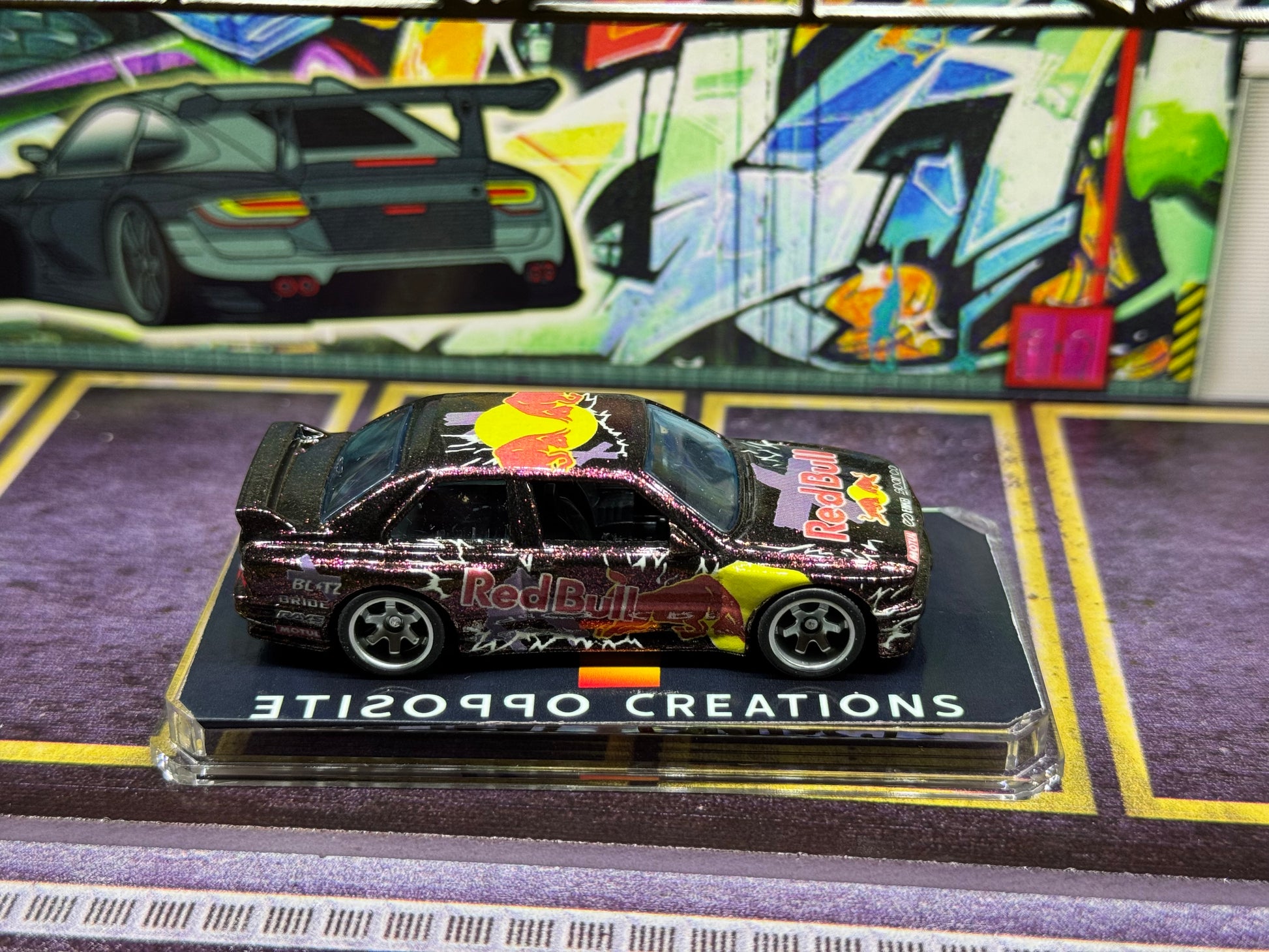 Custom Hot Wheels BMW M3 painted in a champagne color. It is rocking a redbull livery. Will come in a custom display case.